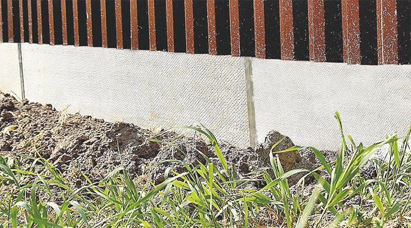 Вбиваем в землю крепления и вставляем в них хризотилцементные полоски. Раз-два - и ваш участок защищен от вторжения бродячих животных, дождевых подтоплений и прочих неприятностей.